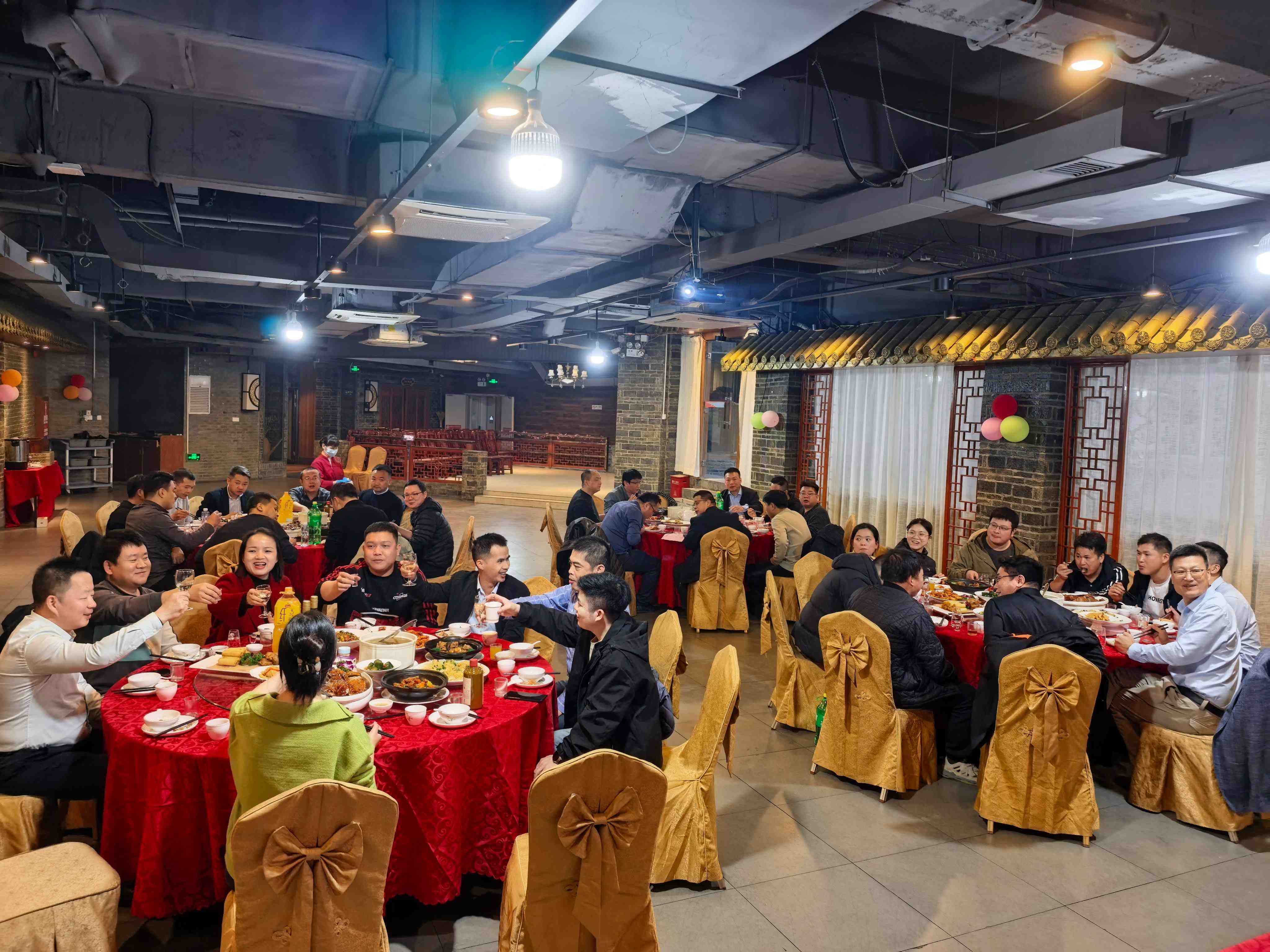 晚宴现场精致大气、佳肴飘香,公司连线未返深同事隔空举杯,尽显“一个都不能少”的人文情怀;合作伙伴精永诚朱总莅临,宾主尽欢共话蓝图。抽奖与红包雨惊喜连连,现场气氛热烈,众人觥筹交错间畅谈过往、展望未来,凝聚更强向心力。